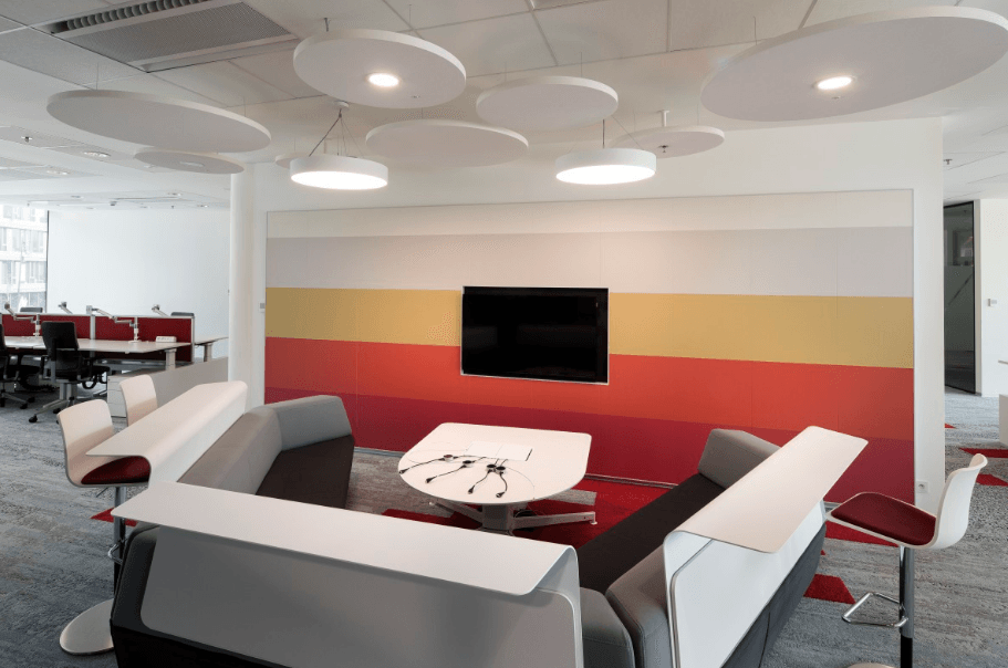 When properly installed and when using the right type of composition and layering, Suspended Ceilings can offer excellent sound absorption in offices, warehouses, and other areas. They are particular useful in areas that were originally designed for warehousing or storage but are now used for office space or similar environments. Acoustic Ceilings or Tiles help absorb the higher frequencies by dissipating the sound waves inside them. For lower frequencies they help to reduce reflection between floor and ceiling.